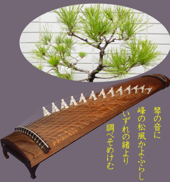 (琴の音に、峰の松風の音が通いあっているらしい。一体この妙なる音色はどの琴の緒から奏で出し、どこの山の尾から響き始めて、ここに相逢ったのだろう)