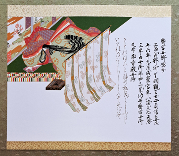 現在、複製の掛軸が多く売られており、私はそのうち、斎宮女御(右写真)と紀友則の掛軸を購入し、床の間に飾っている。斎宮女御の絵の特長は、皇族で身分が高いためその姿が几帳の陰に隠れるように描かれていることである。