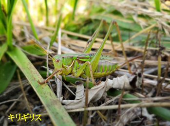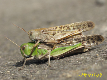 夏の終わりごろにはウオーキングコースの狭山湖の堰堤のところにはバッタがたくさん飛んでいた。堰堤を下る細い道をキチキチと音を立てながら飛んで、2メートルばかり先に着地する。こちらが近づくとまたキチキチと飛んで2メートル先に降りる。中にはオスを負んぶしたトノサマバッタも沢山いた。