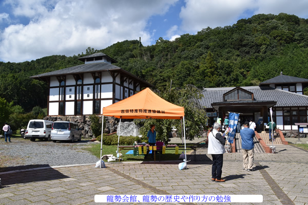 人出とかでごった返している。全員ぬうようににして、椋神社参拝し龍勢祭会館を見学。