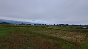 2025/10/15 雨上がりの澄んだ景色の明野です。昨日、刈払機の修理を甲府にあるドイツメーカーの代理店にお願いして帰る時に車のヒーターが回っているのに気がついた。今朝の寝起きの温度は14℃。昨夕から雨が降っていて、十分な濡れ具合+無風+低温、の条件(延焼の心配が少ない)が揃ったので雑木や紙類をドッサリ燃やした。意外とうまく燃やせた。燃やしている間に濡れて汚れを拭き取りやすい車の汚れを拭き取った。これから天地変えしたままの菜園を整地してニンニクや昨日買ったサラダ菜を植えます。  |