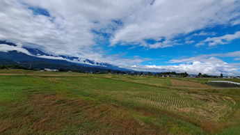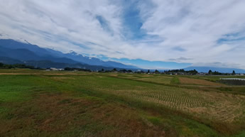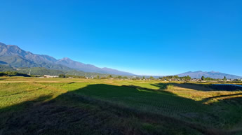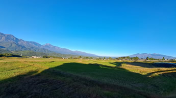 2025/10/27 今朝の寝起きの温度は13℃。秋晴れの朝です。清々しい山々の景色です。熱かった夏のせいか、玉ねぎやニンニクの苗植えが例年より遅い。心配になってS先輩に聞いたら、ソロソロかな?と言われた。早速、ニンニクの種を植えたら、寒いカラ風も吹かないのに早々に芽を出してきた。今日は農協が玉ねぎの苗を売り出す。今まで二回売り出したが、いつも即売して買えなかった。みんな例年より遅い売り出しに気を揉んでいるのだろう。今年も晩生の苗を100本ほど植えたい。鹿肉のカレーにタップリ使うためです。  |