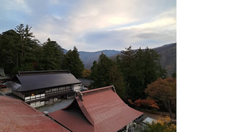 2025/11/04 関東一のパワーポイントといわれる奥秩父の三峯神社に白門40年年会の14名が到着してこれから山の上で温泉を楽しみます。写真は宿泊室から曇取山方面を撮影しました。ここに到着したときに神の使いといわれる鹿三頭の出迎えを受けました。明日の朝は日が昇る時間に祈祷してもらいます。パワーをもらってから秩父湖を散策します。紅葉真っ盛りの奥秩父を楽しんでから秩父市の好意で市内の祭会館の見学も予定しています。  |