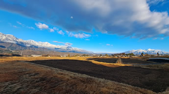 2026/04/08 今朝の寝起きは+4℃。昨日は中学校の入学式だった孫にリンゴを発送した。帰りに南牧村の資料館に寄った。石器時代や縄文時代の沢山の出土品を見学した。村の施設にしては立派な内容だった。こんなことから、今朝の写真は明野の梅の木縄文遺跡から撮ったものを送ります。明野の縄文人はこんな素晴らしい景色を眺めながら暮らしていたようだ。反対側には甲府盆地、その向こうに富士山が眺められます。 |