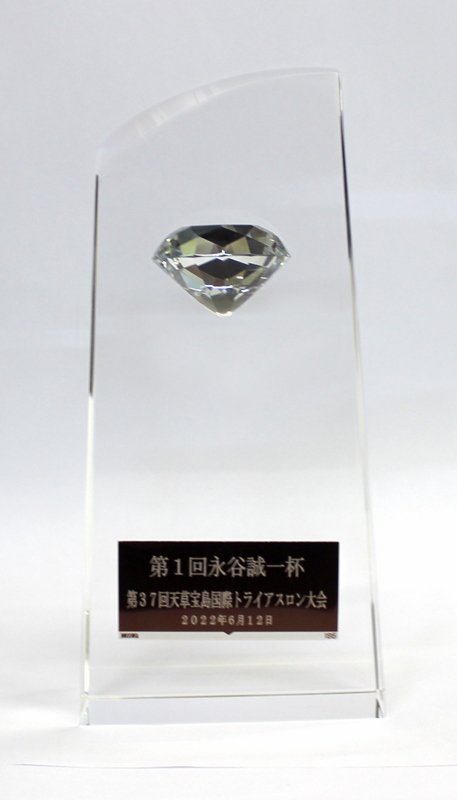 受賞した写真のトロフィーは、縦190mm・横90mm・厚さ35mmのクリスタルで、上部中央に光り輝くカットが施され、重さ1.1kgの重厚感溢れ
