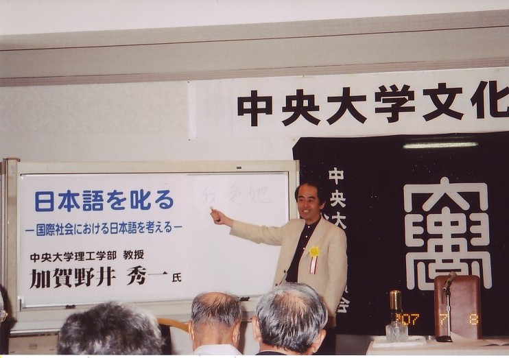 続いて、午後2:15頃より、「記念講演会」の部に入った。記念講演会は、「白州次郎とカストロ」と題して、中大学員会会長久野修慈様がお話しされた。尚、この部の司会進行役は会員星弘美氏であった。 |