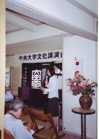 続いて、隣の教室で行われた『葛西聖司氏のトークショー、テーマ「日本と韓国―私の韓舞−』を見に行きました。在日韓国人女性で、韓国伝統舞踊家である金利恵(キムリエ)氏と葛西聖司氏のトークショーでした。 葛西聖司氏のトークショーを終えた後、邉田さんご夫妻は帰宅され、小生は、メーンステージの方に戻りました。そこで、中央大学応援団、武蔵国府太鼓翔駒会の演技・演奏を見た後、福引抽選会で自分の番号の当否を見届け、残念ながら、当選しなかったことを見極めた後、大学キャンパスを後にしました。 |