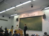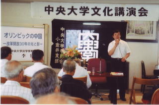 恒例の第一部「文化講演会」は、午後1時10分より、李廷江中央大学法学部教授を講師に迎え、「オリンピックの中国―改革開放30年の光と影―」の演題でご講演いただいた。今回は北京オリンピックを目前に控え、正に時宜を得たテーマのためか、支部会員の出席数とほぼ同数の40名を超える一般市民の参加を得、聴講者総数は過去最多の80余名に達する盛況となった。 教授は、「五輪を通して中国はどうなるか。五輪の中国を考えるにはいくつかの視座があります。」と話を起こされた。「四川大地震は五輪直前の中国人に大きなインパクトを与えたが、一人っ子政策での若者たちは被災者を一生懸命助けたり、軍の活躍も民衆から感謝された。しかし、役人の腐敗がひどい」「中国は五輪を開催する十分な資格を持つが、一方、やかましいオリンピックは早く終わってほしいと広言する人もいる」等々の光と影に触れ、既に胡錦濤の次期後継者がいることをあげ、政治改革をゆっくり進めようとしていること、中国人自身がモラルを高めるべきであることをなどを話され、最後に「日本人との関係は大切で、市民レベルでの相互理解が進めば、これほどすばらしいことはないと思います。」としめくくられた。 第2部の総会は、辻本京朔中央大学理事、佐藤光信学員会副会長、三枝幸雄付属高校校長を始め近隣支部からの来賓を向かえ、午後3時より渡辺大三幹事の司会で開かれた。斉藤芳司支部長の挨拶、各来賓者の紹介の後議事に入り、平成19年度事業報告・同決算報告、続いて平成20年度事業計画(案)・同予算(案)、そして20年度支部役員(案)が次々に承認され、議事は滞りなく終了した。 第3部の懇親会は、午後5時から伊藤隆文幹事の司会で開かれた。各来賓者からのご挨拶を頂いた後、富田修平副支部長の音頭による乾杯で歓談に入った。今回講師の李先生からもお言葉を頂いた他に、先生のお嬢さんも司会者の指名に応じて立ち、現在、アメリカの大学に学ぶ者として若々しい挨拶をされ「将来は父のような人間になりたいと思います。」と結んで、満場の拍手を浴びる場面もあった。 |