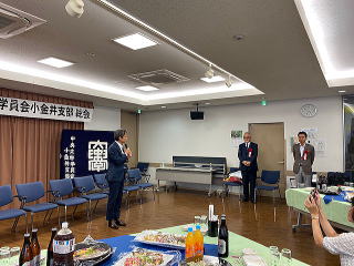 総会に先立ち、西岡真一郎小金井市長にご挨拶頂きました(写真参照)。 総会自体は、関口和仁幹事の司会の下、中吉支部長の議事進行で、総勢20人程の学員が参加して執り行われ、議案はすべて満場一致で承認されました。 今年度も、昨年同様、総会終了後の懇親会は行われませんでした。 |